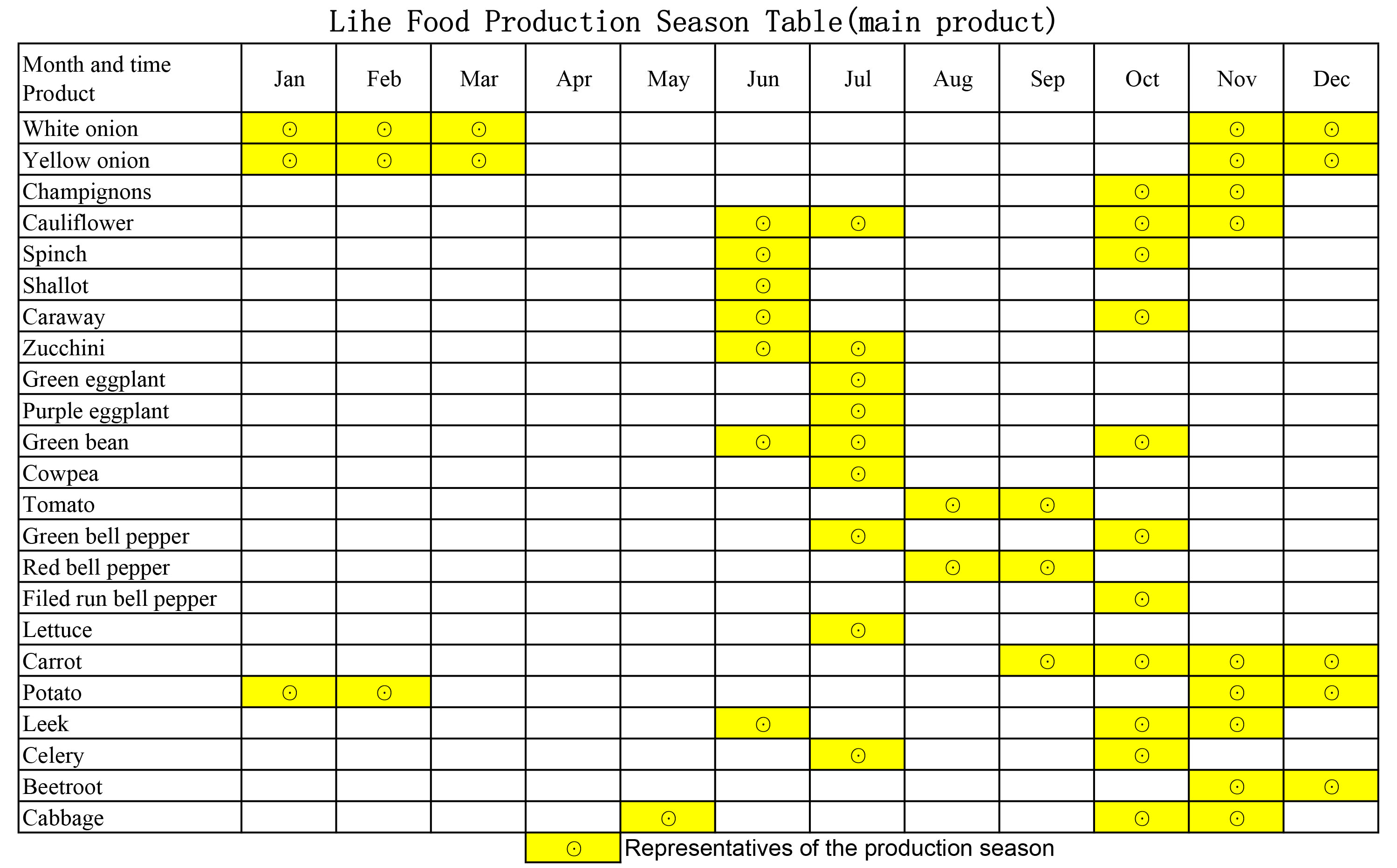 Production seasontable