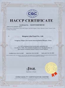 - Our company is HACCP-system certificated in December 2004. We have implemented it in our quality control system.